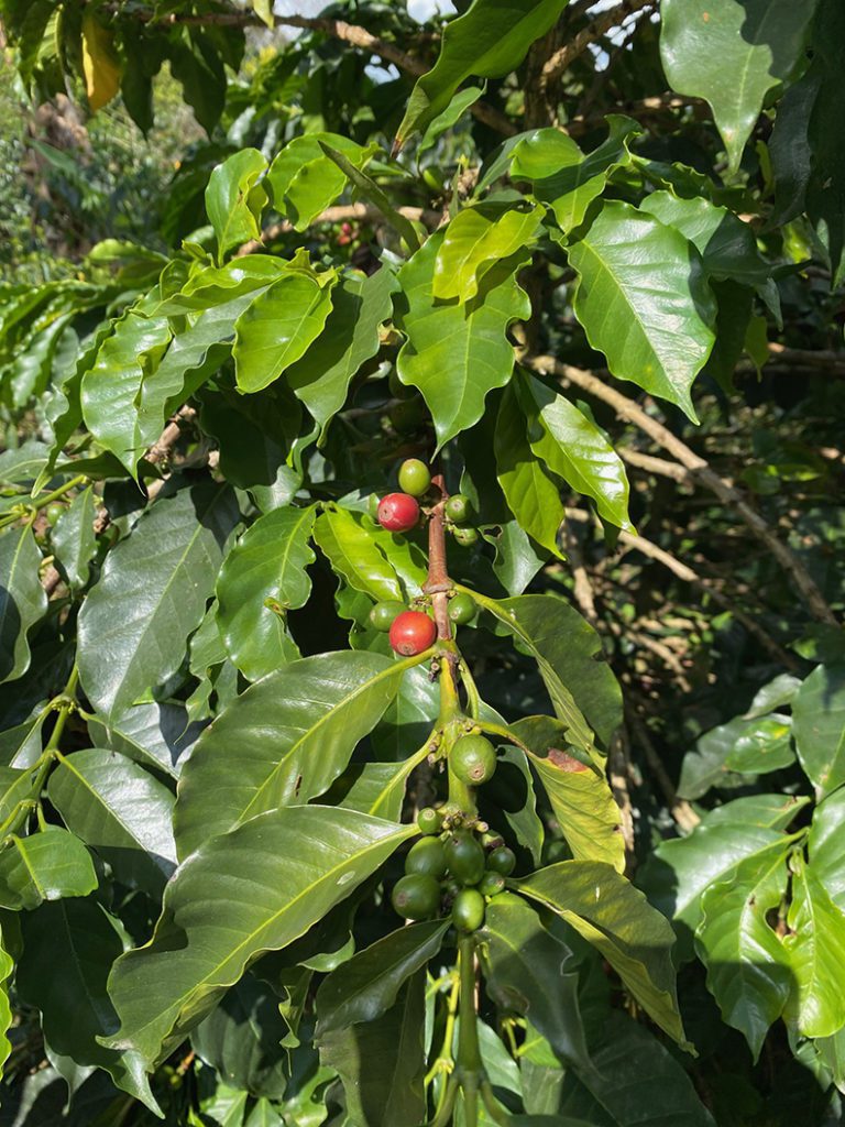 L’exploitation familiale produit bon an mal an 8-10 tonnes de café en bio. «Nous bénéficions d’un terroir idéal à plus de 1700 m d’altitude. Les arbres sont cultivés sur des cendres volcaniques, avec une température qui avoisine les 22°C et des précipitations moyennes de 1200 mm à 1850 m d’altitude. Nous cultivons plusieurs variétés, dont le Caturra, le Bourbon et le Geisha. Chaque caféier donne en environ 400 g de cerises par an, soit 280 g de café torréfié», commente Luis Alejandro Ortega en nous faisant visiter ses cultures.