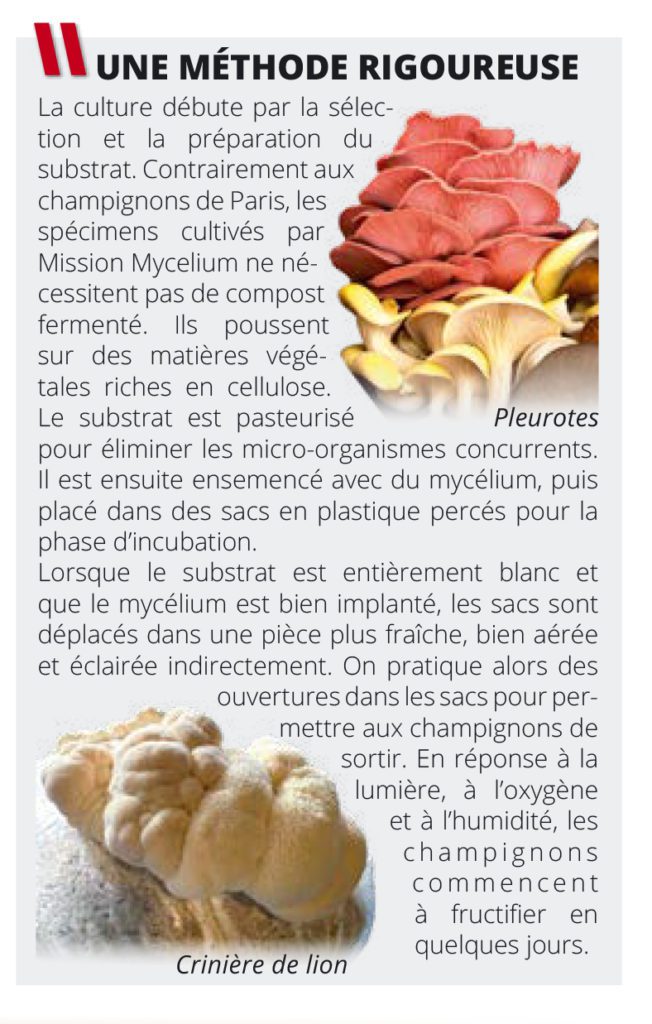 Les frères travaillent en étroite collaboration avec une quinzaine de restaurants de la région. Des chefs étoilés plébiscitent leurs produits pour leur fraîcheur, leur diversité et leur qualité. Mission Mycelium fournit aussi des épiceries, propose des kits de culture pour les particuliers et vend en ligne des extraits concentrés de champignons fonctionnels, comme le reishi ou la crinière de lion.