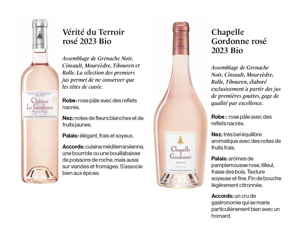 La conversion à l’agriculture biologique a débuté lors du millésime 2010. Le domaine est entièrement cultivé en bio depuis le millésime 2021, sans intrant chimique de synthèse. Seuls le soufre et le cuivre sont utilisés pour les traitements. Pour les amateurs de crus rosés ciselés à la perfection, La Gordonne est une valeur sûre des Côtes-de-Provence, comme en témoignent ces deux crus qui feront les délices de vos clients en cette période estivale. Ces crus sont en vente chez Prodega ou sur le site Drinks.ch.