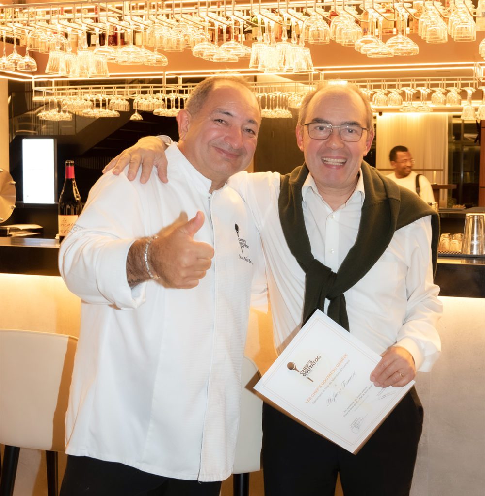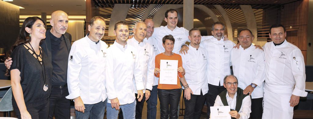 Les Chef’s Goutatoo, tous d’origines et de formations différentes, œuvrent au quotidien dans des établissements de toutes catégories. Ils aiment partager leur savoir-faire comme lors des Automnales où ils régalent le public à l’Atelier des chefs avec leurs menus à prix tout doux.Le 20 octobre dernier, c’est dans le tout nouvel écrin de l’hôtel Marriott qu’ils ont accueilli de nouveaux membres. Enzo Cianci, de Fabbrica pasta à Genève, et Jean-Marie Pelletier, de l’Hôtel Cailler à Charmey, ont été adoubés lors d’une soirée gourmande et pleine de bonne humeur.Stefano Fanari, membre du comité de la Société des Cafetiers, Restaurateurs et Hôteliers de Genève, fait désormais partie des membres d’honneur des Chef’s Goutatoo, comme Brigitte Turin, présidente de l’Association genevoise pour la promotion du goût, Jennifer Jolly, directrice du Cook’n Show des Automnales, et Pierre-Alain Brodard, propriétaire du Café du Marché et de l’Olivier de Provence à Carouge.