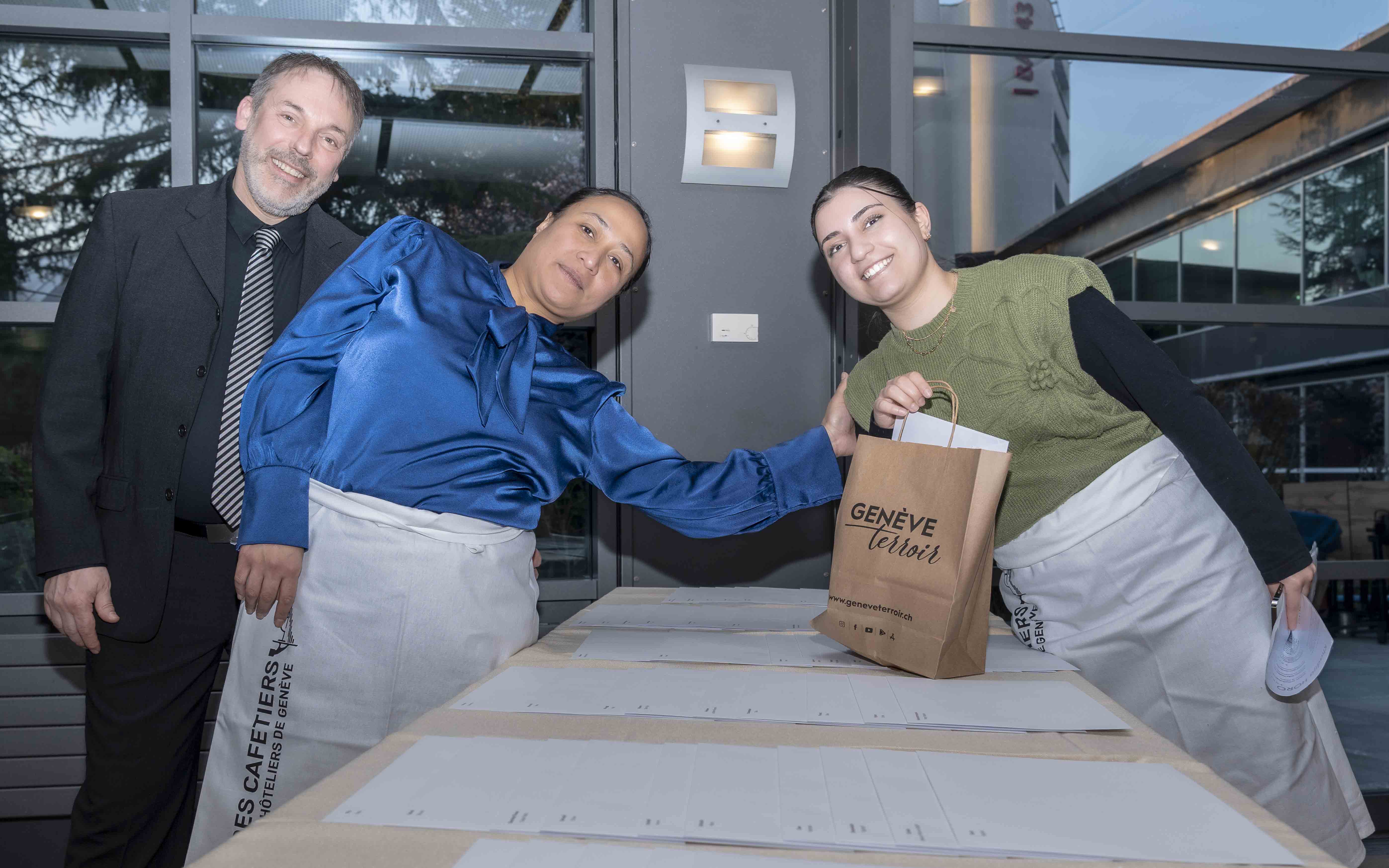 Ils et elles sont souriants, fiables, disponibles, communicatifs. Ils maîtrisent toutes les ficelles d’un service de qualité, connaissent les exigences en matière d’hygiène et de sécurité, sont à même de conseiller les clients, qu’il s’agisse du choix des mets ou des vins, et de donner un coup de main de façon efficace en cuisine. 76 étudiants de l’Université de Genève ont reçu une attestation décernée par la SCRHG le mercredi 18 mars au restaurant Le Trinquet à Genève après avoir suivi une formation intensive. Toutes et tous disponibles pour effectuer des missions dans les établissements du canton.