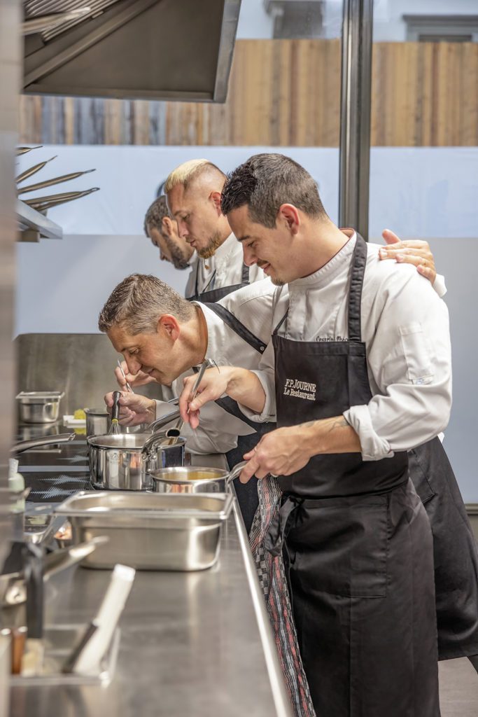 Chef étoilé et comblé, Dominique Gauthier tient, depuis un peu plus d’un an, et avec un bonheur affiché, la barre de F.P. Journe – Le Restaurant. Le célèbre horloger François-Paul Journe cherchait un chef de cuisine créatif et expérimenté pour raviver l’arcade patrimoniale de la Rue du Rhône. Grâce à un ami commun, il est «tombé» sur Dominique Gauthier qui lui rêvait d’un nouveau défi, après trois décennies dans les cuisines du Chat Botté. Entre les deux hommes, les atomes crochus ont instantanément forgé une cordiale complicité. Dans le distingué décor d’un établissement classé au patrimoine, Dominique Gauthier laisse désormais libre cours à son irrécusable créativité.
