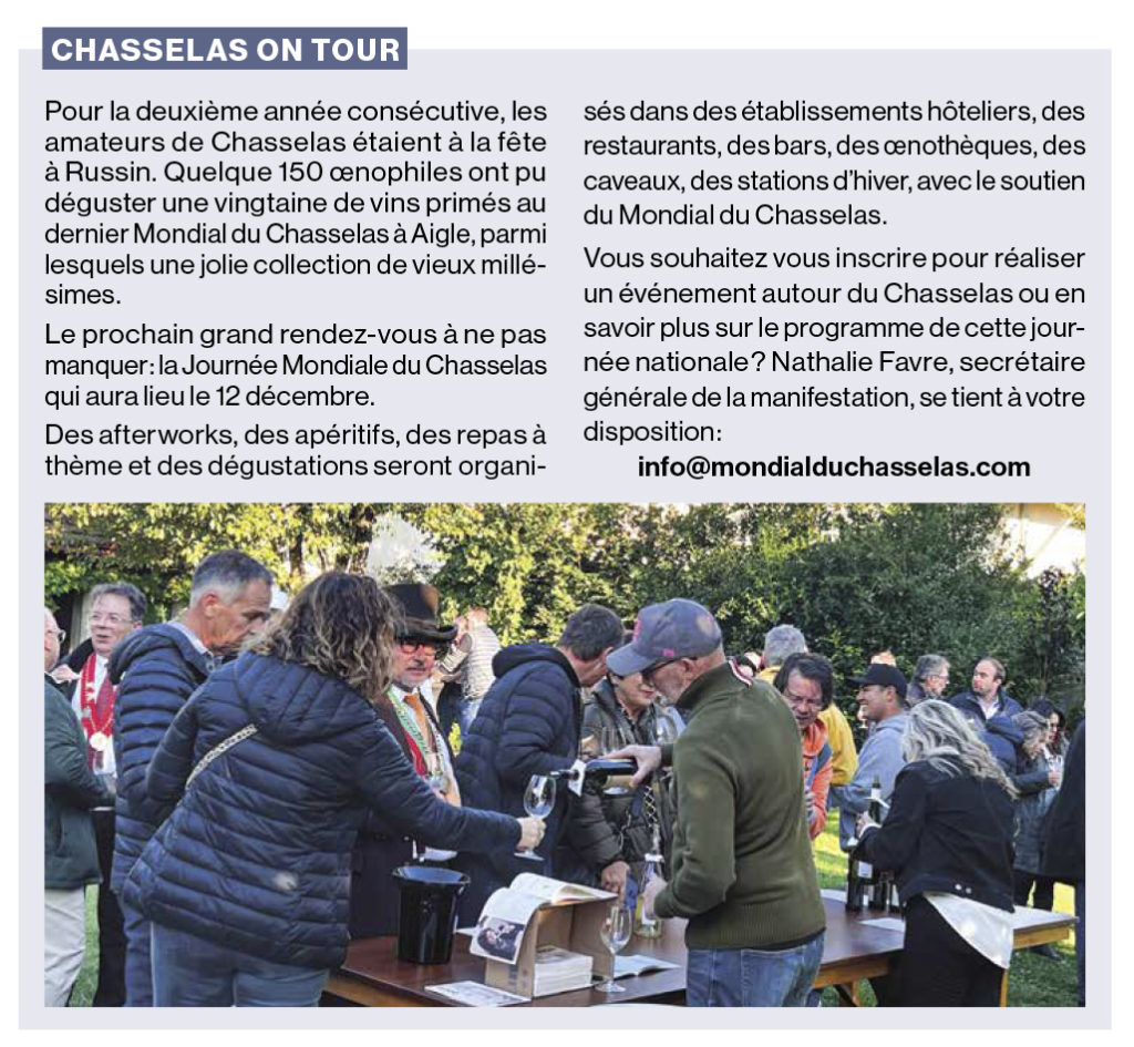 Grandiose et conviviale ! La 61e édition de la Fête des Vendanges de Russin a attiré les foules et marqué les esprits. Pari réussi donc pour le nouveau comité, sous la houlette de son président Ricardo Marques, qui reprenait le flambeau cette année. Cette fête est un véritable hommage au vignoble genevois, aux producteurs et la qualité de leurs produits. C’est aussi un trait d’union entre la ville et la campagne.De nombreuses caves et cours de fermes ont accueilli fanfares, groupes musicaux ou folkloriques et donné la possibilité de déguster les crus genevois accompagnés de spécialités culinaires locales.