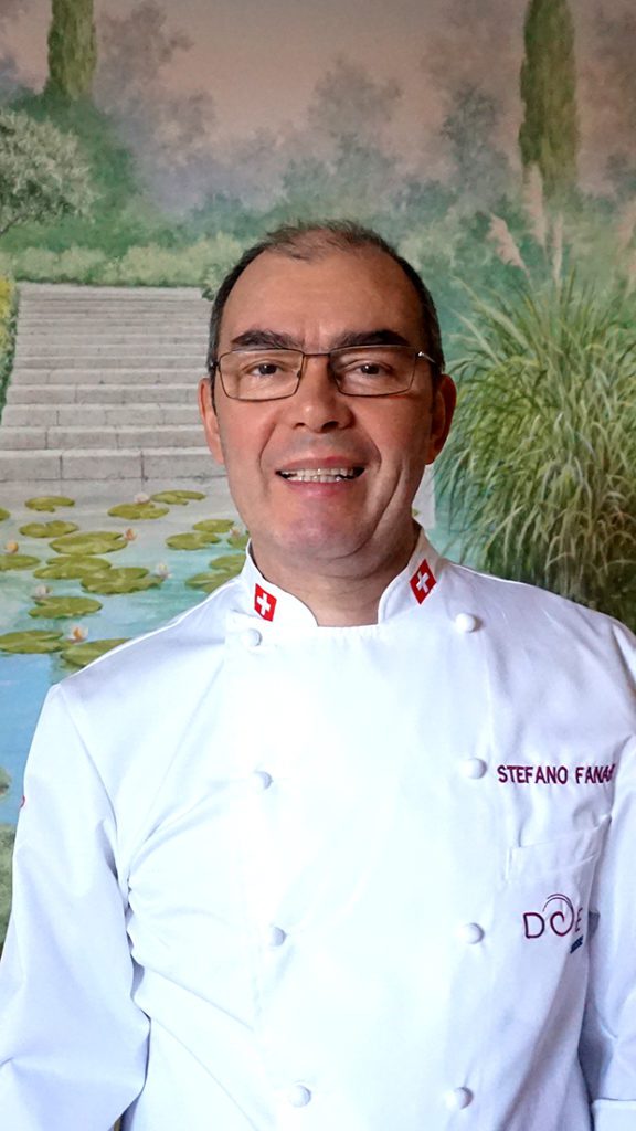 Les gourmets, qui fréquentent son Giardino Romano, le savent bien : dans cet établissement qui fleure bon l’Italie, ils ont la certitude d’émoustiller leurs papilles. On y vient pour les fameuses pizzas au feu de bois, la truffe magnifiée en toutes saisons, et une alléchante carte qui glorifie les ingrédients typiques des plus beaux terroirs. Stefano Fanari n’est décidément pas membre de l’Alliance des chefs Slow Food par hasard. Il s’investit à fond dans tout ce qu’il fait, par amour du goût, des produits authentiques et de ses convives. Des convives qu’il remercie, par diverses attentions spéciales, en cette année si particulière qui marque les 20ans de son restaurant qu’il dirige avec talent aux côtés de sa charmante épouse grisonne Evelina.Un riche parcoursQuel parcours ! Le chef est devenu cuisinier professionnel sur le tard à la faveur de l’article 32 de l’Ordonnance sur la formation professionnelle. En 1982, il débarque en Suisse avec un diplôme d’électromécanicien en poche. « Aujourd’hui, je suis tout juste capable de changer une ampoule », s’amuse-t-il. Arrivé sur sol helvétique, il apprécie tout de suite le savoir-faire et l’organisation des Helvètes. Il enchaîne les emplois dans la restauration et l’hôtellerie, entre Genève, Lausanne et Zurich, où il rencontre Evelina à l’Hôtel Élite de la Bahnhofstrasse, propriété d’Ueli Prager, grand patron du groupe Mövenpick, pour lequel il a officié durant 15 ans. « Je voulais apprendre l’allemand. Car c’est une nécessité si l’on veut gravir les échelons dans nos métiers en Suisse. »