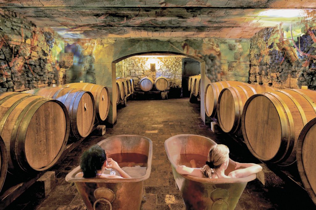 Le visiteur se détend dans un bain chaud en dégustant un cru local, il admire le panorama et profite de l’ambiance reposante de la vigne en se laissant narrer l’histoire du lieu. Cette expérience d’immersion sensorielle ne se déroule pas sur le côteau de Lavaux mais bien dans une cave vigneronne qui abrite le concept de la (La Vigne)5.