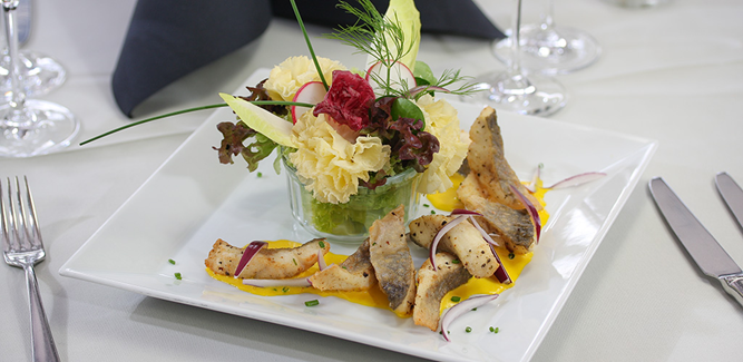 En cuisine, c’est le chef Alexandre Ulmann qui tient la barre. « C’est une chance de pouvoir nous fournir directement chez les producteurs de la région, mais aussi de disposer des récoltes des fermes et du jardin du site qui soutiennent une agriculture responsable. J’ai évidemment beaucoup de plaisir à cuisiner des légumes frais à peine récoltés », nous confie-t-il. Il ajoute : « Chaque jour, mon équipe et moi servons une bonne centaine de couverts.