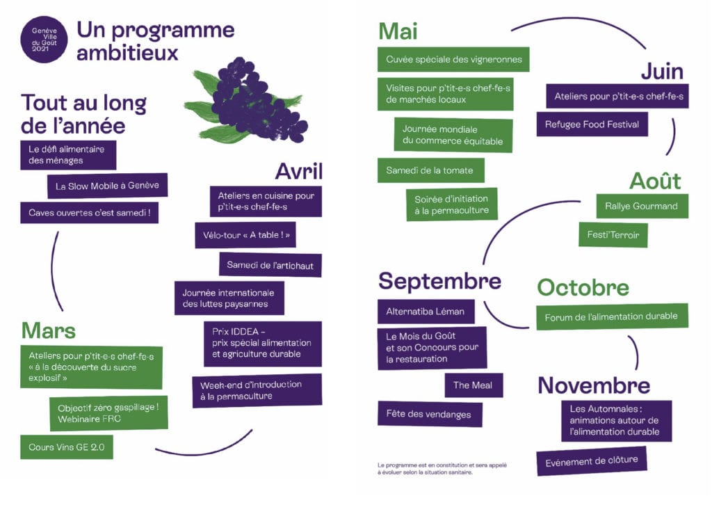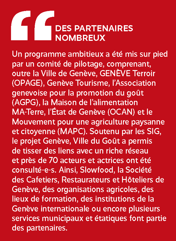 Pour vous aider à affûter vos idées, on vous livre le fil conducteur. Lors de la présentation officielle du programme le 16dernier, Alfonso Gomez, Conseiller administratif en charge du développement durable, a planté le décor : « la crise sanitaire et économique engendrée par le Covid-19 a mis en exergue l’importance de la production locale, la fragilité du système économique et la nécessité de changer le modèle de consommation dominant. L’éducation au goût, l’accès aussi large que possible à une alimentation saine et de qualité et, enfin, le lien entre alimentation et climat constituent les priorités thématiques de Genève, Ville du Goût. »