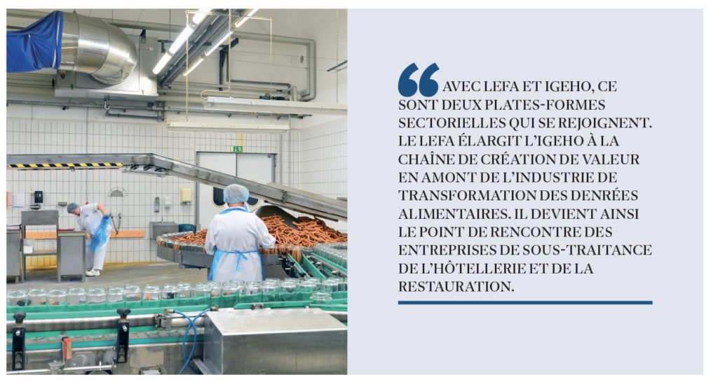 Cette année, un nouveau rendez-vous spécialement consacré à l’industrie agroalimentaire helvétique, appelé Lefa, intègre le salon professionnel de l’industrie de la viande (anciennement Mefa) et se déroulera simultanément au Salon Igeho 2023 à Bâle. Selon les organisateurs, l’évolution du marché exigeait impérativement la création d’une plateforme représentative de ce secteur particulier.
