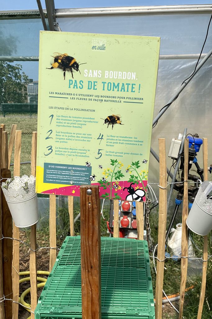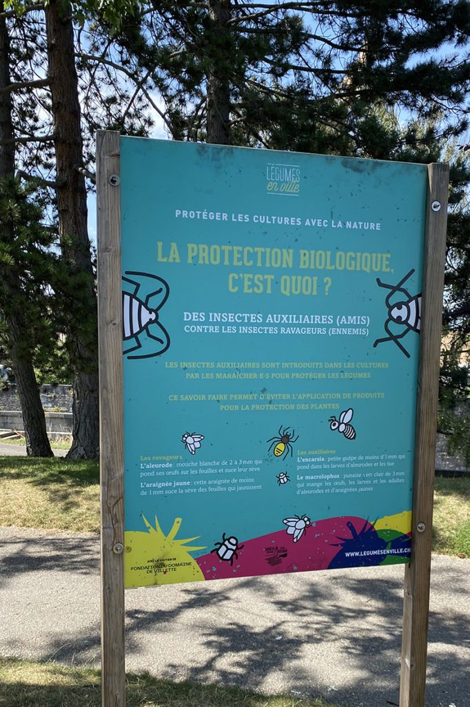 Des panneaux explicatifs transmettent toute l’information au public. Ce temps de rencontre entre la ville et la campagne comprend aussi les récoltes des cultures citadines qui sont transmises à la Fondation Partage, ainsi qu’aux élèves des classes d’écoles qui viennent visiter les jours de récolte.