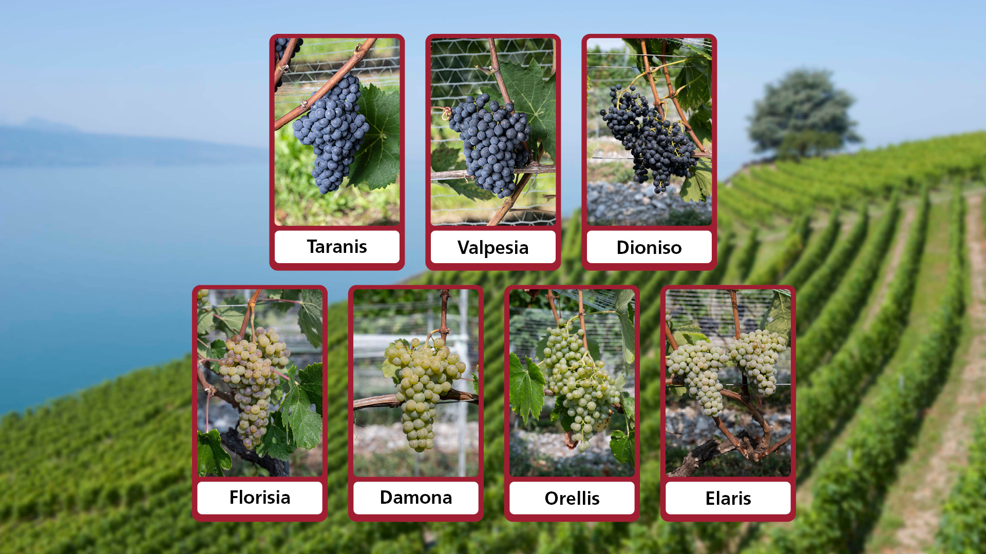 Florisia, Elaris, Orellis, Damona, Valpesia, Dioniso et Taranis sont les nouveaux cépages homologués. Quatre blancs et trois rouges qui cumulent au moins deux gènes de résistance contre le mildiou et l’oïdium, les deux principales maladies fongiques de la vigne. Ces nouvelles variétés montrent par ailleurs une faible sensibilité au blackrot et au botrytis.