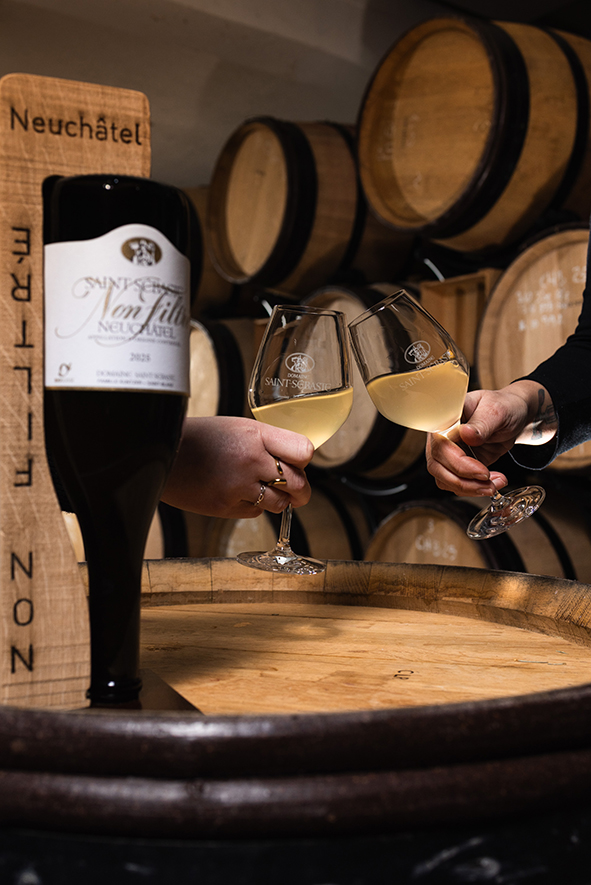 Comme à l’accoutumée, Neuchâtel Vins et Terroirs a fait les choses en grand pour accueillir la presse à l’occasion de la sortie officielle du Non Filtré, Chasselas emblématique du terroir neuchâtelois, premier vin à être mis en bouteille en Suisse. Des journalistes ont fait le déplacement de tout le pays pour assister à l’événement. Un cru adulé outre-Sarine, mais aussi dans toute la Romandie. 150'000 litres de Non Filtré sont mis en bouteille chaque année, soit 18% du Chasselas du canton connu aussi pour l’excellence de son Pinot Noir (décliné également en Œil-de-perdrix) et de son Chardonnay.