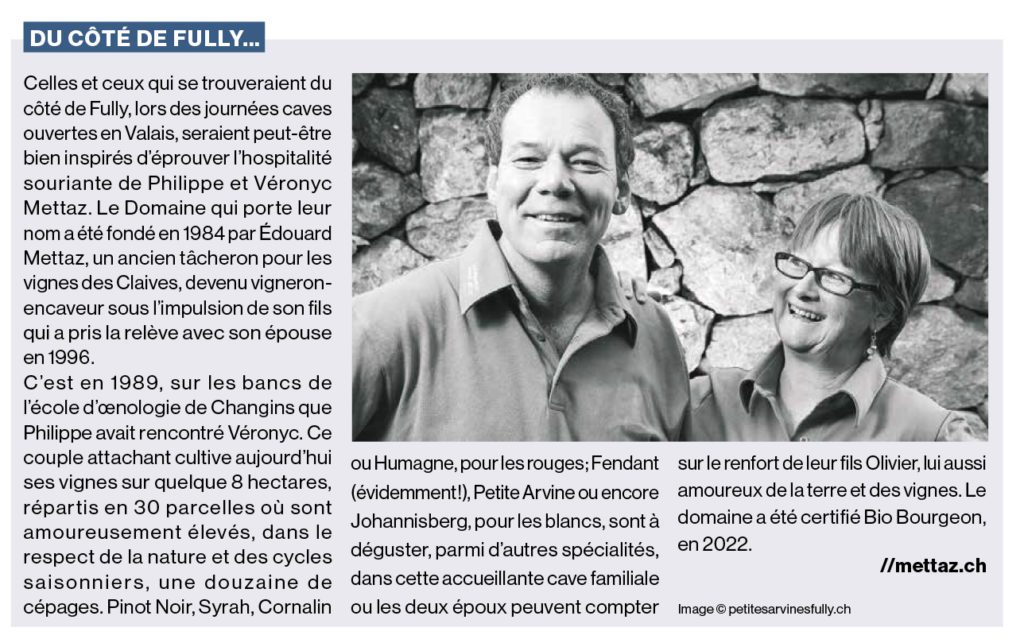S. M. : Oui ! Il y en a… C’est le cas par exemple de la cave de Marie-Thérèse Chappaz à Fully, ou encore de celle de la famille Mercier à Sierre. Ce sont des caves célèbres qui ont une excellente réputation et une clientèle fidèle. Elles préfèrent organiser leurs propres journées, peut-être pour s’épargner une affluence trop importante, difficile à gérer. On peut les comprendre…