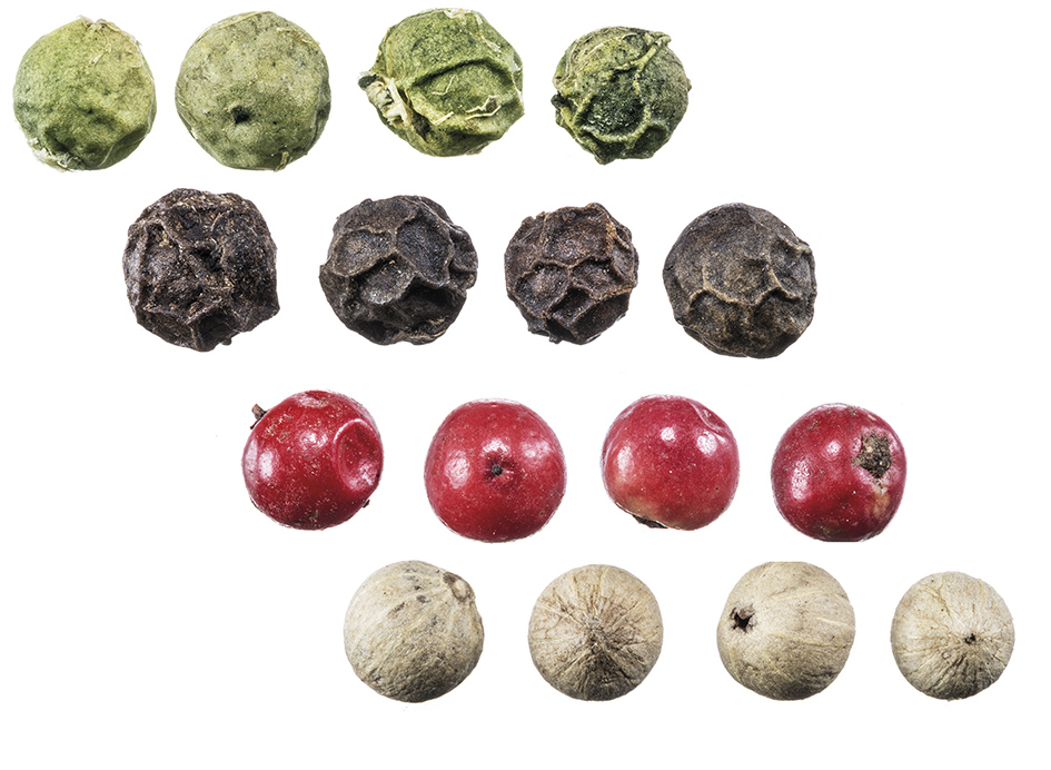 Les baies sont arrivées à pleine maturité, avec une belle couleur rouge. Elles sont récoltées puis séchées à l’abri de la lumière pour ne pas agresser les graines et afin de conserver la couleur rouge sombre.Saveurs boisées et fruitées, nuances fleuries, notes de dattes, de pruneaux et de miel.UtilisationAccompagne à merveille un rouget, des salades de fruits (poires, fraises), le chocolat, ou pour aromatiser une confiture.Le blancArrivé à maturité, le poivre est ramassé une fois sa teinte rouge vif atteinte, puis subit un trempage pour le débarrasser de son enveloppe rouge et ne garder que le noyau blanc,Saveurs délicates d’agrumes, de romarin et d’herbe fraîche.UtilisationPour rehausser des poissons, coquillages, crustacés, viandes blanches, légumes, œufs, purées et sauces blanches.