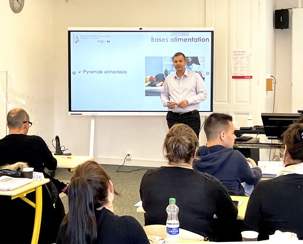 La Cité des métiers réinvestit les halles de Palexpo. Au programme : de nombreux événements, conférences, performances artistiques. Plusieurs recrutements en direct pour l’apprentissage seront également proposés tout au long de la semaine.La Société des Cafetiers, Restaurateurs et Hôteliers de Genève se réjouit d’y promouvoir un magnifique éventail de professions, de la cuisine aux spécialistes en restauration et spécialistes en hôtellerie-restauration. Elle profitera de présenter le diplôme cantonal de cafetier. Il faut dire que l’école offre un large panel de possibilités à celles et ceux qui souhaitent ouvrir un établissement dans un proche avenir.Un choix vaste« Nous proposons 2sessions de cours par année avec différentes formules. Pour ceux qui souhaitent la présence d’un formateur, nous offrons deux options : le cours du jour et le cours du soir. Les cours E-Learning et Mixte correspondront aux attentes des candidats qui préfèrent gérer leur temps », précise Stéphane Jan, chargé de cours et chef de projet E-Learning.En moyenne, 30% des candidats choisissent la formule en présentiel, 30%, la mixte, et 40% l’option E-Learning. Réputée pour l’excellence de sa formation, la Société des Cafetiers accueille chaque année quelques 400candidats sur les 700 qui se présentent à l’examen cantonal.La formation en présentiel s’étend sur 170h. Celle en E-Learning nécessite environ 120h de travail. Elle est optimale pour celles et ceux qui ont des connaissances du secteur, ou pratiquent déjà un métier dans l’hôtellerie-restauration. Enfin, l’option mixte permet de réviser, en présence de professeurs spécialisés, des sujets un brin plus ardus, à l’instar des lois, des salaires et de la comptabilité.À noter que pour aider les étudiants en présentiel, ces derniers bénéficient de l’expertise d’un docteur en neuroscience sur une journée afin de les initier aux techniques d’apprentissage.Pour ce qui est des tarifs, ils se montent à CHF 1990.– en présentiel, CHF 1350.– en mixte, et CHF 600.– en E-Learning. Les personnes inscrites aux deux premiers modules peuvent bénéficier, sous certaines conditions, d’un chèque de formation de CHF 750.– de l’Office pour l’orientation, la formation professionnelle et continue.