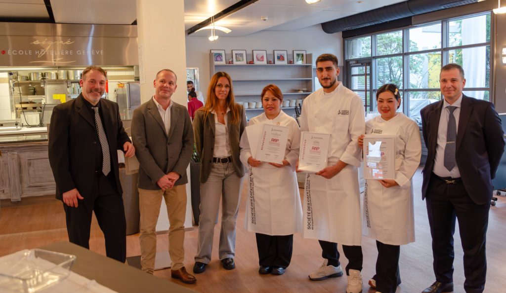 Caroll Singarella et Yves Chardonnens-Cook ont également salué cette démarche, en soulignant son impact pour dynamiser l’hôtellerie genevoise. Remettre ces premières attestations « RAP cuisine », c’est reconnaître le talent et le savoir-faire de ceux qui font vivre nos établissements. Les trois lauréats ont maintenant une belle carte en main pour l’avenir !Mention spéciale pour le côté restauration et hospitalité de toute l’équipe du Trinquet, dirigée par Morgan Hertoux. Elle a pour vocation l’accueil des stagiaires en recherche d’emploi, dans le cadre de programmes de réinsertion professionnelle. Cette expérience permet à ces personnes une remise à niveau et une évaluation complémentaire dans le métier. Et il va sans dire que les futurs candidats attendent déjà avec impatience la prochaine session de la RAP en service, prévue pour le printemps 2025 (mais pas seulement ! la suite au prochain épisode…). Une belle opportunité pour enrichir leurs compétences et ouvrir de nouvelles portes professionnelles dans leurs recherches d’emplois.